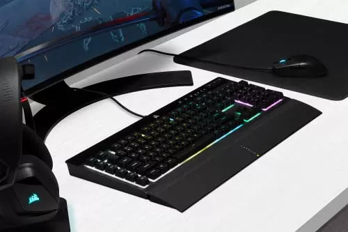 O teclado K55 RGB PRO traz iluminação dinâmica em cinco zonas com o poderoso software iCUE, permitindo criar efeitos visuais únicos e sincronizar macros nas seis teclas dedicadas.