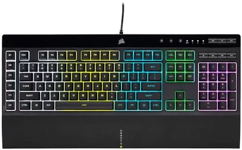 O Corsair K55 RGB PRO leva a jogatina no PS5 a outro patamar combinando resistência a líquidos e retroiluminação RGB dinâmica em cinco zonas, configuráveis via software CORSAIR iCUE.